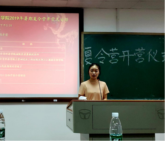 党委副书记熊雅老师和研究生秘书王郁芬老师,研究生代表胡琛学姐,以及36名2019暑期夏令营营员。本次大会共分为四个部分,会议由程书记主持。